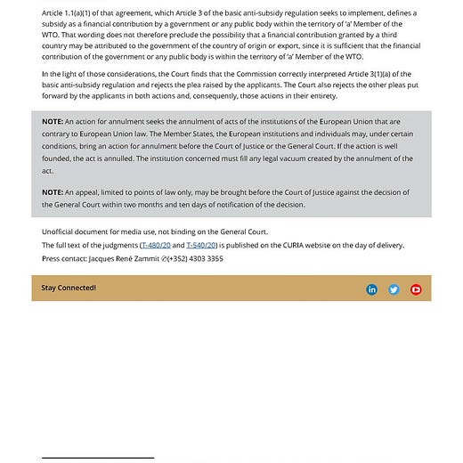 The EU Commission’s efforts to penalise Chinese subsisides granted to companies outside of China has been given the green-light by the EU General Court.